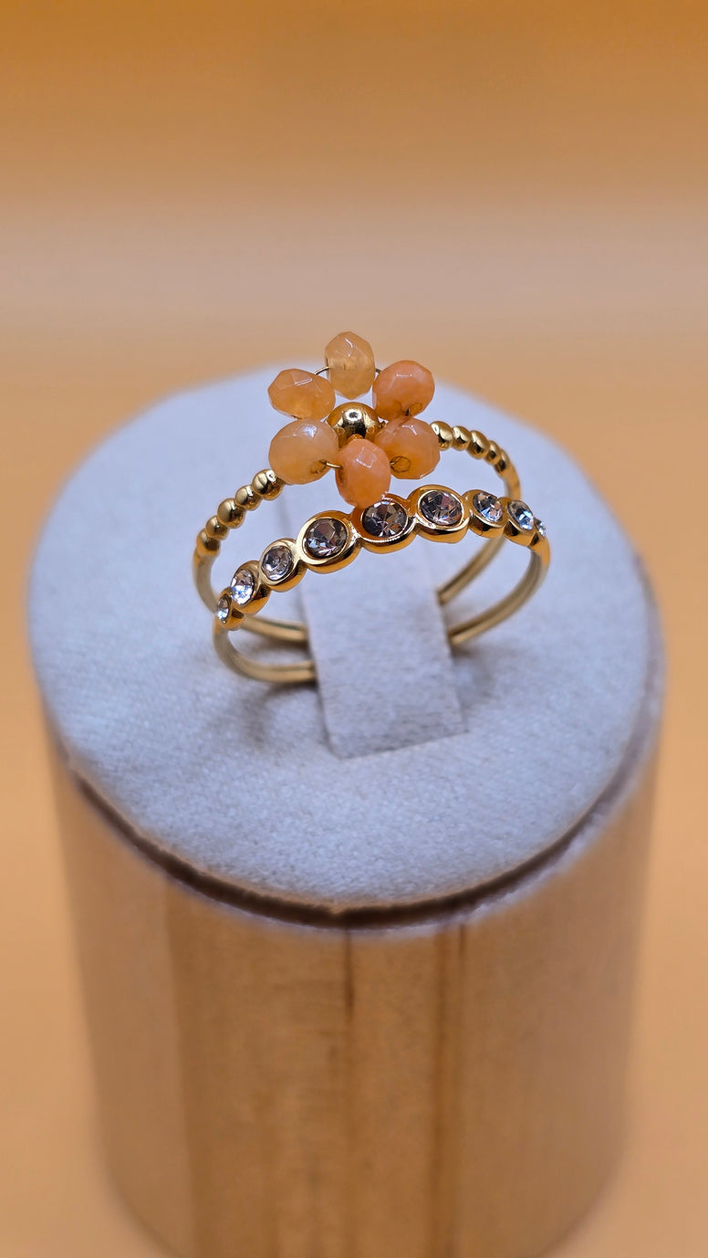 Elégante et moderne, cette bague double anneau en acier inoxydable 304 plaqué or 18k associe une délicate fleur orange et un anneau orné de cristaux façon diamant. Réglable, elle s'adapte à toutes les tailles de doigts pour un look chic et lumineux.