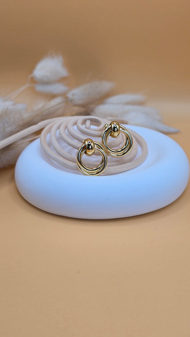 Boucles d’oreilles anneaux entrelacés dorés. Acier inoxydable 304.