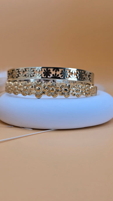 Duo de bracelets fleurs en acier inoxydable 304. Féminité et éclat raffiné.