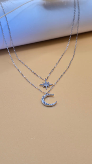 Colliers distincts. Lune et étoile. Argent sterling 925.